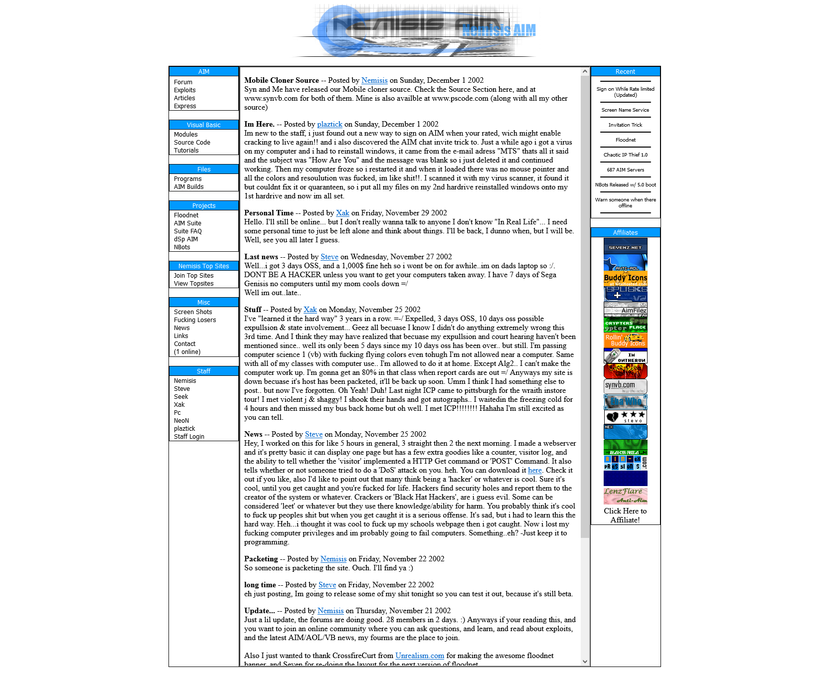 Nemisis contributed a lot to the AIM scene. I have lost contact with him over the years, so if anyone is able to, please help me get in touch with him!
